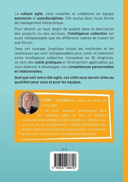 La culture agile, c'est la capacité de travailler et de collaborer en équipe autonome et autodisciplinée. Elle exclue donc toute forme de management hièrarchique.Pour obtenir un haut de degré de qualité dans la fabrication des produits ou des services, l'intelligence collective est aussi indispensable que les différents cadres de travail tel que le Scrum . Dans cet ouvrage, j'explique toutes les méthodes et les techniques qui sont indispensables pour créer et maintenir cette intelligence collective. Compilées en 35 chapitres, ce sont des outils pratiques et directement applicables qui vous aideront à développer vos compétences personnelles et relationnelles.Quel que soit votre rôle agile, ces clefs vous seront utiles au quotidien pour vous et pour les équipes.