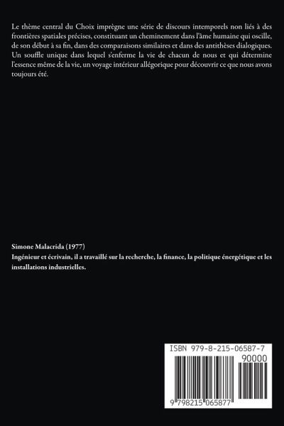 Le thème central du Choix imprègne une série de discours intemporels non liés à des frontières spatiales précises, constituant un cheminement dans l'âme humaine qui oscille, de son début à sa fin, dans des comparaisons similaires et dans des antithèses dialogiques. Un souffle unique dans lequel s'enferme la vie de chacun de nous et qui détermine l'essence même de la vie, un voyage intérieur allégorique pour découvrir ce que nous avons toujours été.