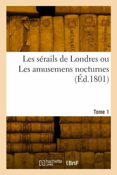 Les sérails de Londres, ou Les amusemens nocturnes. Tome 1 / . Contenant les scènes qui y sont journellement représentées, les portraits et la description des courtisannes les plus célèbres, et les caractères de ceux qui les fréquentent. Traduit de l'anglais. Tome premier [-quatrième] Date de l'édition originale: 1801 Le présent ouvrage s'inscrit dans une politique de conservation patrimoniale des ouvrages de la littérature Française mise en place avec la BNF. HACHETTE LIVRE et la BNF proposent ainsi un catalogue de titres indisponibles, la BNF ayant numérisé ces oeuvres et HACHETTE LIVRE les imprimant à la demande. Certains de ces ouvrages reflètent des courants de pensée caractéristiques de leur époque, mais qui seraient aujourd'hui jugés condamnables. Ils n'en appartiennent pas moins à l'histoire des idées en France et sont susceptibles de présenter un intérêt scientifique ou historique. Le sens de notre démarche éditoriale consiste ainsi à permettre l'accès à ces oeuvres sans pour autant que nous en cautionnions en aucune façon le contenu. Pour plus d'informations, rendez-vous sur www.hachettebnf.fr