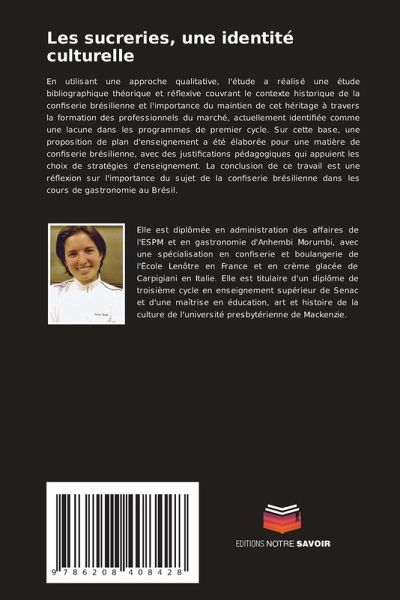 En utilisant une approche qualitative, l'étude a réalisé une étude bibliographique théorique et réflexive couvrant le contexte historique de la confiserie brésilienne et l'importance du maintien de cet héritage à travers la formation des professionnels du marché, actuellement identifiée comme une lacune dans les programmes de premier cycle. Sur cette base, une proposition de plan d'enseignement a été élaborée pour une matière de confiserie brésilienne, avec des justifications pédagogiques qui appuient les choix de stratégies d'enseignement. La conclusion de ce travail est une réflexion sur l'importance du sujet de la confiserie brésilienne dans les cours de gastronomie au Brésil.