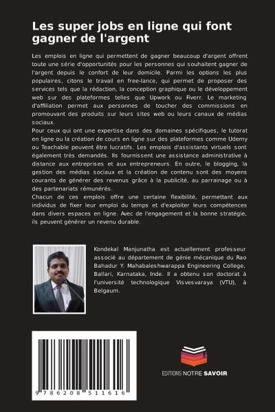 Les emplois en ligne qui permettent de gagner beaucoup d'argent offrent toute une série d'opportunités pour les personnes qui souhaitent gagner de l'argent depuis le confort de leur domicile. Parmi les options les plus populaires, citons le travail en free-lance, qui permet de proposer des services tels que la rédaction, la conception graphique ou le développement web sur des plateformes telles que Upwork ou Fiverr. Le marketing d'affiliation permet aux personnes de toucher des commissions en promouvant des produits sur leurs sites web ou leurs canaux de médias sociaux.Pour ceux qui ont une expertise dans des domaines spécifiques, le tutorat en ligne ou la création de cours en ligne sur des plateformes comme Udemy ou Teachable peuvent être lucratifs. Les emplois d'assistants virtuels sont également très demandés. Ils fournissent une assistance administrative à distance aux entreprises et aux entrepreneurs. En outre, le blogging, la gestion des médias sociaux et la création de contenu sont des moyens courants de générer des revenus grâce à la publicité, au parrainage ou à des partenariats rémunérés.Chacun de ces emplois offre une certaine flexibilité, permettant aux individus de fixer leur emploi du temps et d'exploiter leurs compétences dans divers espaces en ligne. Avec de l'engagement et la bonne stratégie, ils peuvent générer un revenu durable.