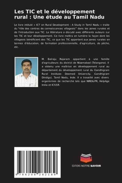 Le livre intitulé « ICT on Rural Development : A Study in Tamil Nadu » traite du "rôle des centres de connaissances villageois" dans les zones rurales et de l'introduction aux TIC. La littérature a discuté avec différents auteurs sur les TIC et leur développement. Ce livre mettra en lumière la façon dont les villageois bénéficient des TIC, ce que les TIC apportent aux zones rurales en termes d'éducation, de formation professionnelle, d'agriculture, de pêche, etc.