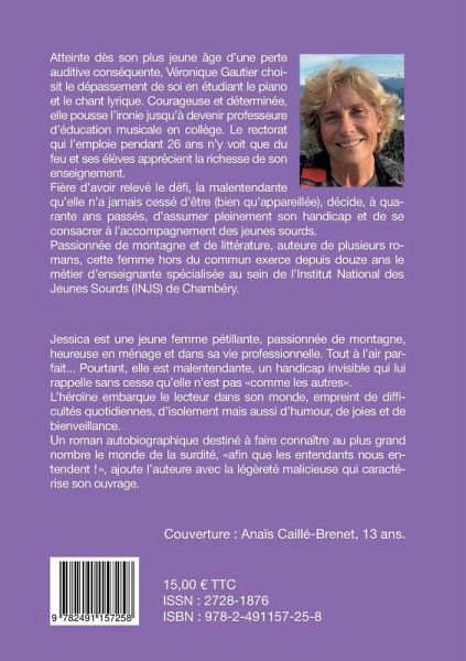 Jessica est une jeune femme pétillante, passionnée de montagne, heureuse en ménage et dans sa vie professionnelle. Tout à l'air parfait... Pourtant, elle est malentendante, un handicap invisible qui lui rappelle sans cesse qu'elle n'est pas "comme les autres". L'héroïne embarque le lecteur dans son monde, empreint de difficultés quotidiennes, d'isolements mais aussi d'humour, de joies et de bienveillance. Un roman autobiographique destiné à faire connaître au plus grand nombre le monde de la surdité, "afin que les entendants nous entendent !", ajoute l'auteure avec la légèreté malicieuse qui caractérise son ouvrage.