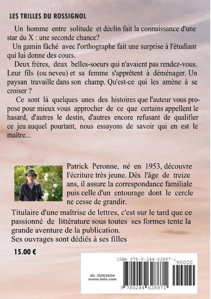 Un homme entre solitude et déclin fait la connaissance d'une star du X : une seconde chance? Un gamin fâché avec l'orthographe fait une surprise à l'étudiant qui lui donne des cours. Deux frères, deux belles-soeurs qui n'avaient pas rendez-vous. Leur fils (ou neveu) et sa femme s'apprêtent à déménager. Un paysan travaille dans son champ. Qu'est-ce qui les amène à se croiser ? Ce sont là quelques unes des histoires que l'auteur vous propose pour mieux vous approcher de ce que certains appellent le hasard, d'autres le destin, d'autres encore refusant de qualifier ce jeu auquel pourtant, nous essayons de savoir qui en est le maître...