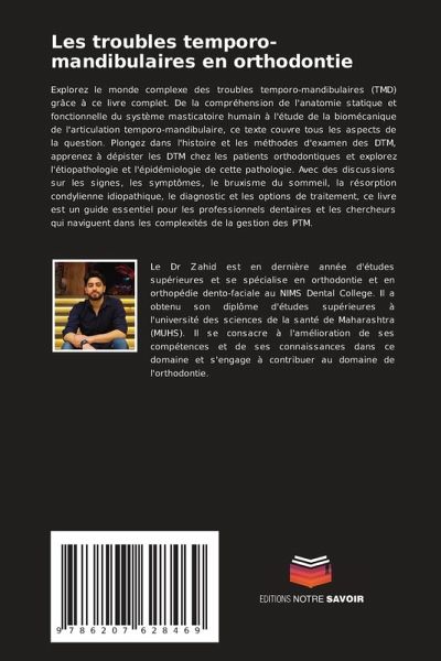 Explorez le monde complexe des troubles temporo-mandibulaires (TMD) grâce à ce livre complet. De la compréhension de l'anatomie statique et fonctionnelle du système masticatoire humain à l'étude de la biomécanique de l'articulation temporo-mandibulaire, ce texte couvre tous les aspects de la question. Plongez dans l'histoire et les méthodes d'examen des DTM, apprenez à dépister les DTM chez les patients orthodontiques et explorez l'étiopathologie et l'épidémiologie de cette pathologie. Avec des discussions sur les signes, les symptômes, le bruxisme du sommeil, la résorption condylienne idiopathique, le diagnostic et les options de traitement, ce livre est un guide essentiel pour les professionnels dentaires et les chercheurs qui naviguent dans les complexités de la gestion des PTM.