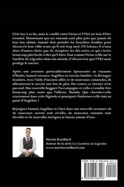 L’été tire à sa fin, mais le conflit entre Virtus et l’Yfel est loin d’être terminé. Maintenant que ses ennemis sont plus près que jamais de leur but ultime, Samuel doit prendre les bouchées doubles pour découvrir leur cible avant qu’il soit trop tard. S’il échoue, il n’aura alors d’autres choix que de récupérer les dés noirs, ce qui s’avère beaucoup plus facile à dire qu’à faire. Tout comme Virtus veille sur le Gardien de Légendes dans son monde, il découvrira que l’Yfel aussi protège le sorcier. Après une aventure particulièrement éprouvante au royaume d’Hadès, Samuel retrouve Angéline en terrain familier : la Bretagne insulaire. Avec l’aide d’anciens alliés et de nouveaux camarades, ils affronteront le sorcier une fois de plus. Par contre, ce dernier n’est pas seul. Une nouvelle boggart l’accompagne et celle-ci semble être beaucoup plus rusée que l’affreux Mumby. Que cherche-t-elle exactement dans cette légende et pourquoi s’intéresse-t-elle tant au passé d’Angéline ? Rejoignez Samuel, Angéline et Clara dans une nouvelle aventure où de nouveaux secrets sont révélés, de nouveaux ennemis sont dévoilés et de nouvelles intrigues se tissent autour d’eux.