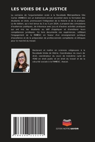 La semaine de l'argumentation orale à la Faculdade Metropolitana São Carlos (FAMESC) est un événement annuel essentiel dans la formation des étudiants en droit, promouvant l'intégration de la théorie et de la pratique. La 6e édition, qui s'est tenue du 3 au 5 juin 2024, a proposé des simulations d'audiences publiques, de tribunaux avec jury et d'autres activités pratiques qui ont mis les étudiants au défi d'appliquer et d'améliorer leurs compétences juridiques. Ce livre documente ces expériences, reflétant l'engagement de la FAMESC en faveur d'un enseignement juridique d'excellence et de la préparation de professionnels compétents et éthiques pour le marché du travail.