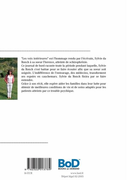 "Les voix intérieures" est l'hommage rendu par l'écrivain, Sylvie da Ronch à sa soeur Florence, atteinte de schizophrénie.Ce journal de bord raconte toute la période pendant laquelle, Sylvie da Ronch s'est battue pour se faire écouter afin que sa soeur soit soignée. L'indifférence de l'entourage, des médecins, transforment ses espoirs en cauchemars. Sylvie da Ronch finira par se faire entendre.Grâce à son récit, elle espère aider les familles dans leur lutte pour obtenir de meilleures conditions de vie et de soins adaptés pour les patients atteints par ce trouble psychique.