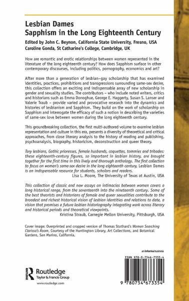 How are romantic and erotic relationships between women represented in the literature of the long eighteenth century? How does Sapphism surface in other contemporary discourses, including politics, pornography, economics and art? After more than a generation of lesbian-gay scholarship that has examined identities, practices, prohibitions and transgressions surrounding same-sex desire, this collection offers an exciting and indispensable array of new scholarship in gender and sexuality studies. The contributors - who include noted writers, critics and historians such as Emma Donoghue, George E. Haggerty, Susan S. Lanser and Valerie Traub - provide varied and provocative research into the dynamics and histories of lesbianism and Sapphism. They build on the work of scholarship on Sapphism and interrogate the efficacy of such a notion in describing the varieties of same-sex love between women during the long eighteenth century. This groundbreaking collection, the first multi-authored volume to examine lesbian representation and culture in this era, presents a diversity of theoretical and critical approaches, from close literary analysis to the history of reading and publishing, psychoanalysis, biography, historicism, deconstruction and queer theory.