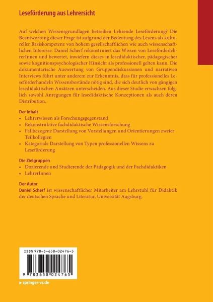 Auf welchen Wissensgrundlagen betreiben Lehrende Leseförderung? Die Beantwortung dieser Frage ist aufgrund der Bedeutung des Lesens als kultureller Basiskompetenz von hohem gesellschaftlichen wie auch wissenschaftlichen Interesse. Daniel Scherf rekonstruiert das Wissen von LeseförderlehrerInnen und bewertet, inwiefern dieses in lesedidaktischer, pädagogischer sowie kognitionspsychologischer Hinsicht als professionell gelten kann. Die dokumentarische Auswertung von Gruppendiskussionen und narrativen Interviews führt unter anderem zur Erkenntnis, dass für professionelles Leseförderhandeln Wissensbestände nötig sind, die sich deutlich von gängigen lesedidaktischen Ansätzen unterscheiden. Aus dieser Studie erwachsen folglich sowohl Anregungen für lesedidaktische Konzeptionen als auch deren Distribution.