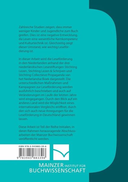 1 Einleitung1.1 Zielsetzung der Arbeit1.2 Forschungsstand und Methode1.3 Leseförderung - Wichtige Begriffe, Ziele und Maßnahmen2 Leseverhalten und Lesegewohnheiten in den Niederlanden3 Die Stiftungen »Stichting Lezen«, »Stichting Lezen & Schrijven« und »Stichting Collectieve Propaganda van het Nederlandse Boek«3.1 Stichting Lezen3.1.1 Entstehung, Ziele, Organisation und Finanzierung3.1.2 Erfolgreiche Leseförderung3.1.3 Kampagnen und Projekte3.2 Stichting Lezen & Schrijven3.2.1 Entstehung, Ziele, Organisation und Finanzierung3.2.2 Erfolgreiche Leseförderung 3.2.3 Kampagnen und Projekte3.3 Stichting Collectieve Propaganda van het Nederlandse Boek3.3.1 Entstehung, Ziele, Organisation und Finanzierung3.3.2 Erfolgreiche Leseförderung3.3.3 Kampagnen3.4 Die Leescoalitie4 Leseförderung in den Niederlanden und Erkenntnisse für deutsche Institutionen, die das Lesen fördernLiteraturverzeichnisAnhang: Experteninterviews