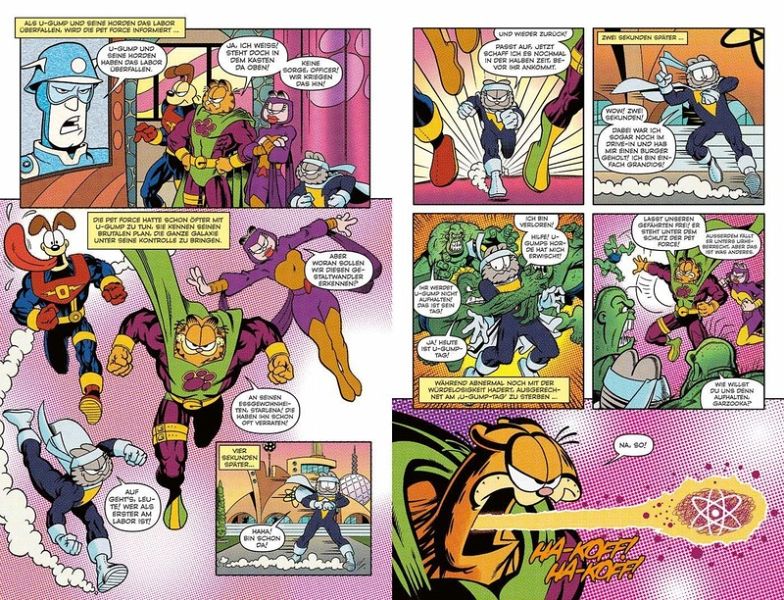 Autor Mark Evanier und der langjährige Garfield-Stripzeichner Gary Barker haben eine bunte Palette an Abenteuern in Petto, die den dicken Kater ins Schwitzen und uns zum Lachen bringt.