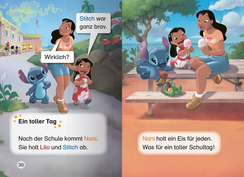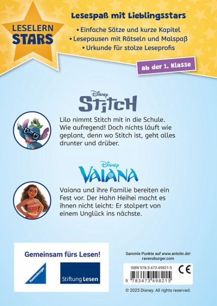 Zwei lustige Geschichten aus der Welt von Vaiana und Stitch in einem Erstlesebuch: