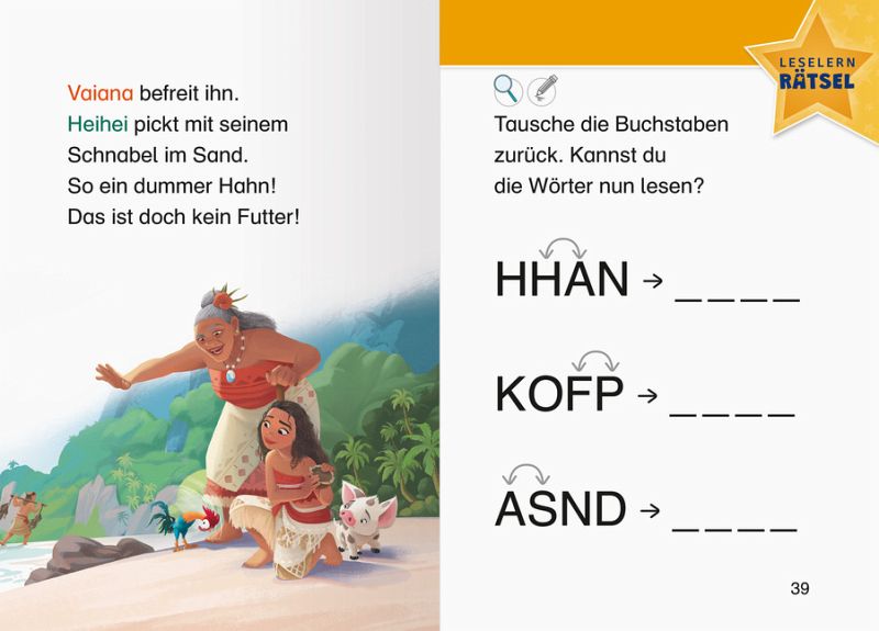 Arielle, Vaiana, Stitch ... Namen zu lesen ist oft schwierig - auch wenn man sie schon kennt. Deshalb haben die Namen in den Leselernstars verschiedene Farben. So werden sie kinderleicht wiedererkannt und müssen nicht jedes Mal aufs Neue entziffert werden.