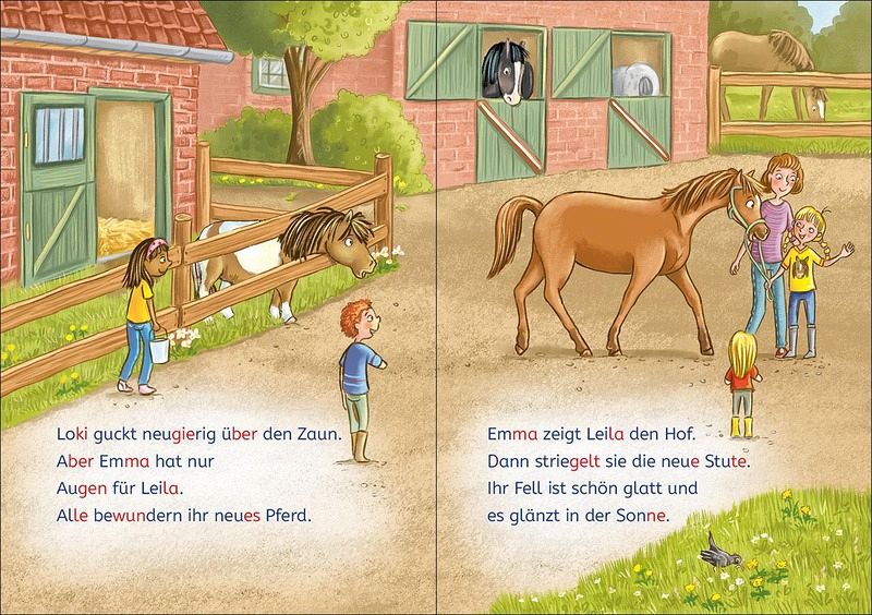 Lesenlernen ganz einfach - mit den Erstlesebüchern der Reihe Leselöwen für die 1. Klasse. Die Kinderbuch-Bestseller unterstützen mit vielen Extras das Textverständnis von Kindern ab 6 Jahren: Spannende Pferdegeschichte rund um das Shetlandpony Loki und die Araberstute Leila Behandelt wichtige Themen wie Hilfsbereitschaft, Freundschaft, Verständnis und Rücksichtnahme Mit Silbenfärbung zum leichteren Lesenlernen Seit über 45 Jahren lernen Kinder mit den Leselöwen erfolgreich lesen Über 27 Millionen verkaufte Exemplare - Die Nr. 1 in Deutschland, Österreich und der Schweiz Spannende Erstlesebücher, unverzichtbar zum Lesenlernen mit Spaß Von Lehrkräften mitentwickelt und empfohlen, von Grundschüler_innen getestet Einfache, kurze Sätze in großer Fibelschrift unterstützen optimal den Leselern-Prozess Genau auf die Interessen und Lesefähigkeiten von Grundschüler_innen ausgerichtet Mit Frage- und Übungsteil zur Förderung des Textverständnisses Inklusive spannendem "Schon gewusst"-Sachwissen Abwechslungsreiche Quizfragen auf Antolin steigern die Lesemotivation