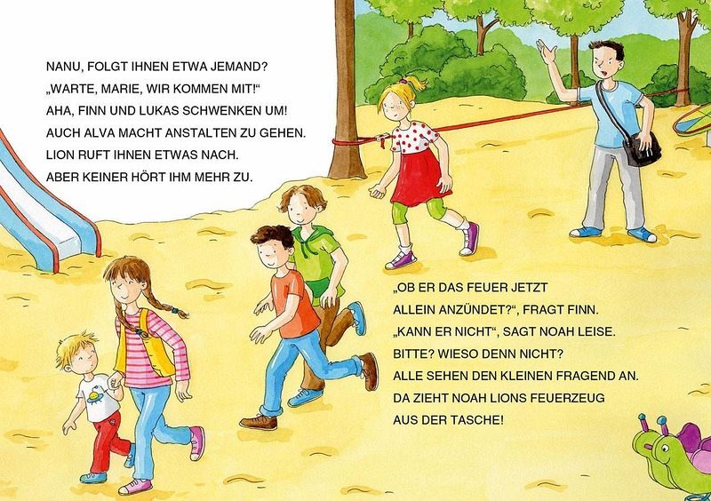 Am Waldrand spielen macht Spaß, doch Lion macht einen gefährlichen Vorschlag. Er will ein Feuer machen - wer traut sich, Nein zu sagen? Pia muss sich ebenfalls überlegen, wie mutig sie ist, denn sie will im Freibad vom Dreier springen. Aber der ist verflixt hoch ...