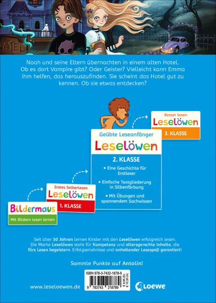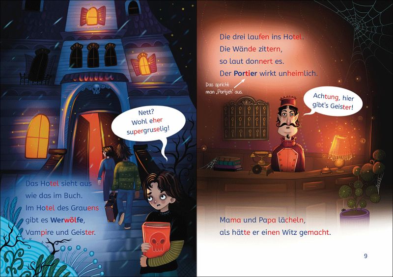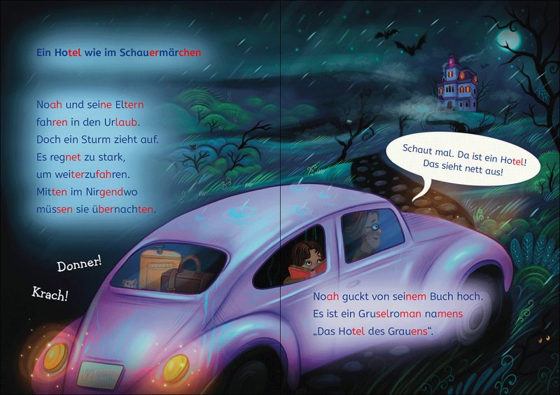 Noah liebt gruselige Geschichten. Und so findet er es sehr spannend, in dem alten Hotel zu übernachten. Es sieht aus, als könnte es aus einem seiner Bücher sein. Ob es dort Vampire und Werwölfe gibt? Oder vielleicht Geister? Vielleicht kann ihm Emma helfen, das herauszufinden. Sie wohnt auch in dem Hotel und scheint sich gut auszukennen. Ob sie etwas entdecken?