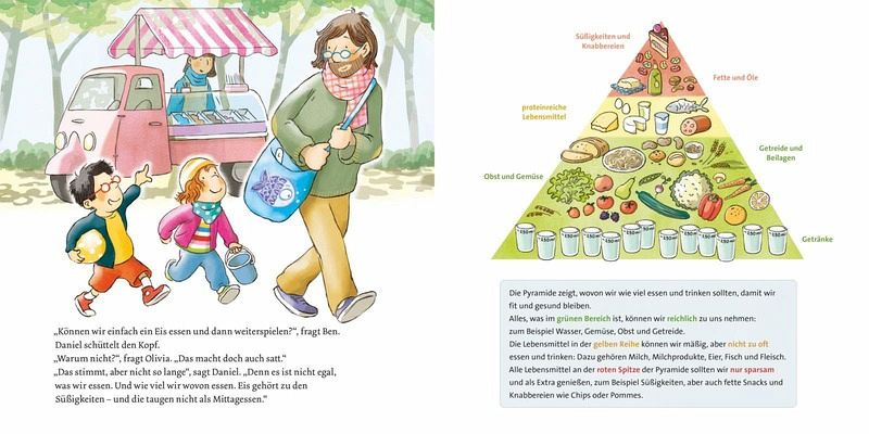 Warum haben wir Hunger und Durst? Warum können wir nicht nur Süßigkeiten essen? Warum sollen wir viel trinken? Welche Obst- und Gemüsesorten gibt es? Und was ist eine Ernährungspyramide? Antworten auf diese und viele andere Fragen bekommen Kinder in dieser humorvoll und kindgerecht erzählten Sachgeschichte.