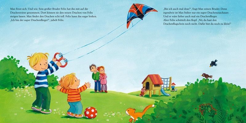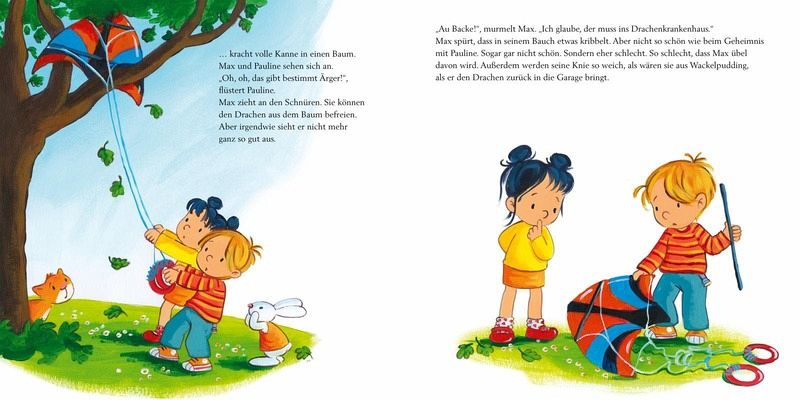 Sein großer Bruder nimmt ihn mit zur Drachenwiese. Max freut sich riesig. Doch dann lässt Felix den Drachen alleine steigen - Max ist dafür noch zu klein. Wie gemein! Enttäuscht heckt Max mit seiner Freundin Pauline einen Plan aus, der sich zuerst aufregend anfühlt, ihnen aber bald Bauchweh bereitet. Dabei lernen sie, dass es gute und schlechte Geheimnisse gibt, wie vielfältig Gefühle sind und warum es meistens gut ist, auf das Bauchgefühl zu hören.