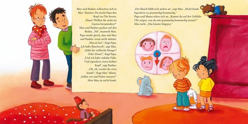Für Kinder ist es gar nicht einfach, ihre verschiedenen Gefühle zu erkennen. Manchmal erlebt man sogar viele Gefühle auf einmal und ist an einem einzigen Tag fröhlich, wütend, traurig, enttäuscht, ängstlich und glücklich. So ein Gefühle-Durcheinander erlebt auch Max in dieser Geschichte.