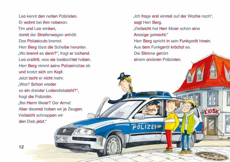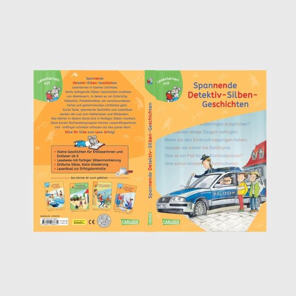 Sechs aufregende Silben-Geschichten erzählen von Abenteuern, in denen es um Einbrüche, Diebstahl, Polizeieinsätze, aber auch um ein verschwundenes Ferkel und geheimnisvolle Lichtblitze geht. Alle Wörter sind in farbigen Silben markiert. Diese kurzen Buchstabengruppen können Erstleser und Erstleserinnen schneller erfassen als das ganze Wort.