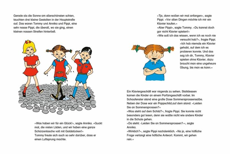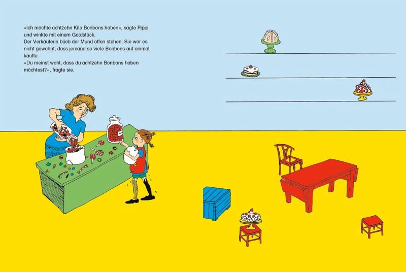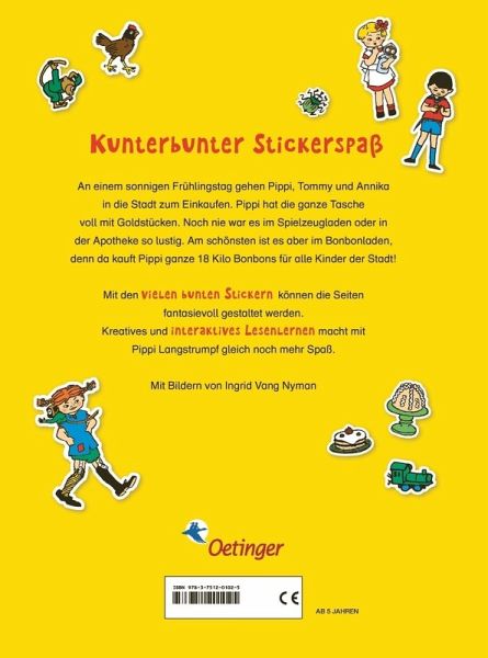Wer Einkaufen langweilig findet, der war noch nicht mit Pippi Langstrumpf unterwegs. Denn in ihrer Begleitung wird selbst der Einkauf zum Abenteuer, bei dem mit echten Goldmünzen gezahlt wird und nicht nur ihre Freunde Tommy und Annika ins Staunen geraten. Einfache Texte, Fibelschrift, klassische Illustrationen von Ingrid Vang Nyman und tolle Sticker laden die kleinen Leser:innen dazu ein, selbst kreativ zu werden und die Geschichte so noch intensiver zu erleben.