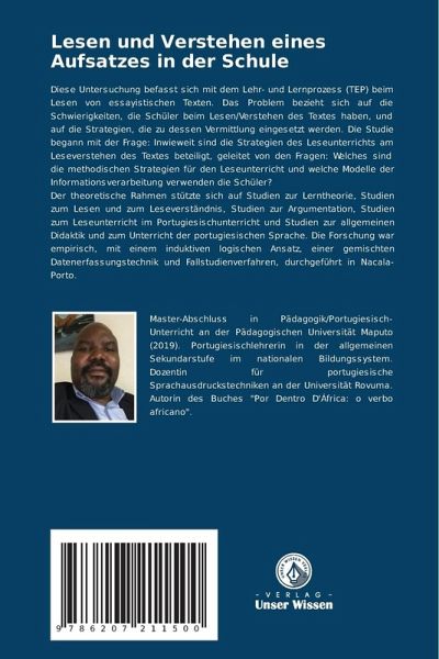 Diese Untersuchung befasst sich mit dem Lehr- und Lernprozess (TEP) beim Lesen von essayistischen Texten. Das Problem bezieht sich auf die Schwierigkeiten, die Schüler beim Lesen/Verstehen des Textes haben, und auf die Strategien, die zu dessen Vermittlung eingesetzt werden. Die Studie begann mit der Frage: Inwieweit sind die Strategien des Leseunterrichts am Leseverstehen des Textes beteiligt, geleitet von den Fragen: Welches sind die methodischen Strategien für den Leseunterricht und welche Modelle der Informationsverarbeitung verwenden die Schüler? Der theoretische Rahmen stützte sich auf Studien zur Lerntheorie, Studien zum Lesen und zum Leseverständnis, Studien zur Argumentation, Studien zum Leseunterricht im Portugiesischunterricht und Studien zur allgemeinen Didaktik und zum Unterricht der portugiesischen Sprache. Die Forschung war empirisch, mit einem induktiven logischen Ansatz, einer gemischten Datenerfassungstechnik und Fallstudienverfahren, durchgeführt in Nacala-Porto
