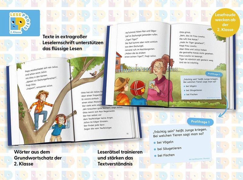 Tigerjagd um Mitternacht - Diese Erstlesegeschichte mit vielen bunten Bildern aus der Leseprofis-Reihe ist das perfekte Geschenk für Grundschulkinder ab 7 Jahren. Der Text ist genau auf die Bedürfnisse von Leseanfänger_innen zugeschnitten. So erleben Kinderim Grundschulalter schnell motivierende Erfolge und werden für das Lesen begeistert. Die Leserätsel zur Sicherung des Textverständnisses begleiten dabei beim Lesen. Spielerisch wird somit die Lesekompetenz gefördert und das Lesen lernen zum Kinderspiel.