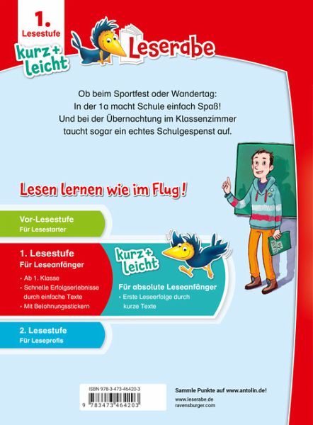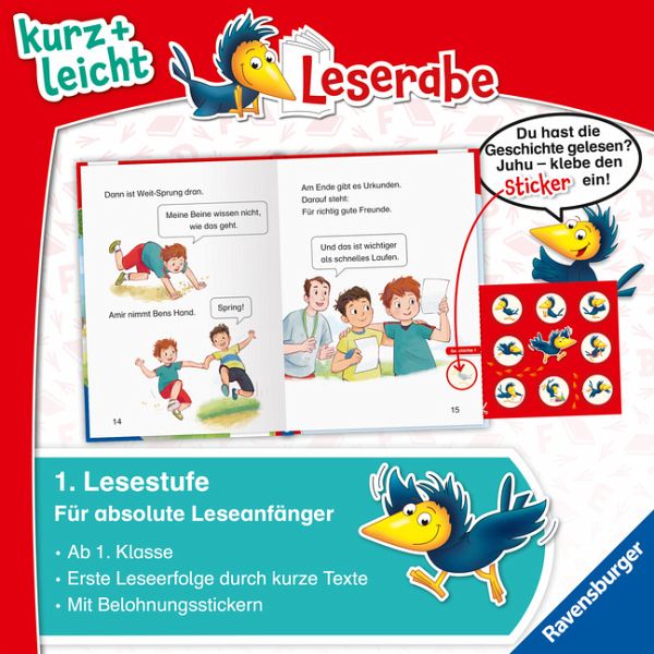 Die Kinderbücher der Reihe "Leserabe - 1. Lesestufe - kurz + leicht" wurden mit Pädagogen entwickelt und richten sich an absolute Leseanfänger ab der 1. Klasse. Sie zeichnen sich durch besonders kurze Texte in großer Fibelschrift, wörtliche Rede in Sprechblasen und einen hohen Bildanteil aus. So steigern sie die Lesemotivation und Lesekompetenz von Mädchen und Jungen zu Beginn ihres Leselern-Prozesses.