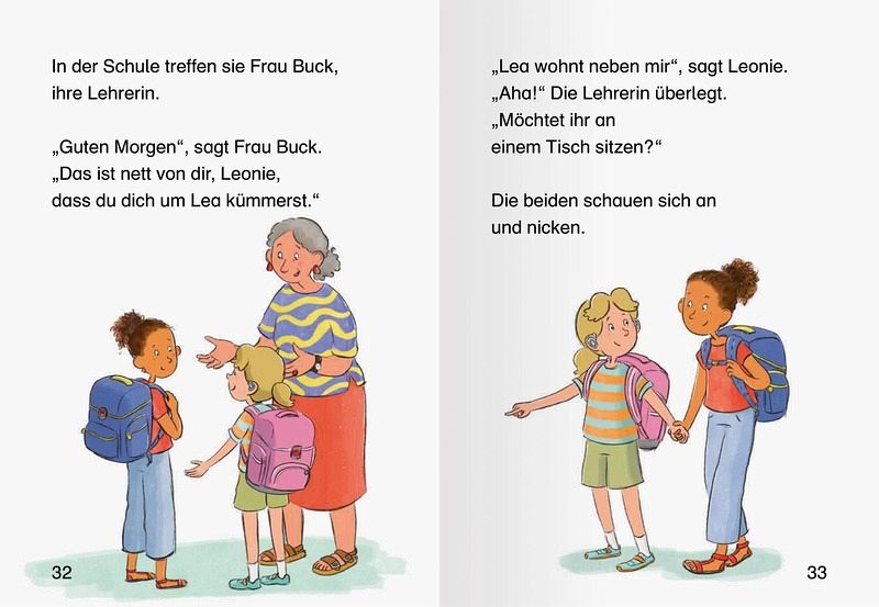 Lea, Mama und Papa ziehen in eine neue Stadt. Lange winkt sie aus dem Auto noch ihrer besten Freundin Emma zu. In der neuen Wohnung ist Lea traurig, denn alles fühlt sich fremd an. Sie vermisst ihre Freunde und muss jetzt ganz allein in die neue Schule. Doch dann öffnet sich die Tür von der Wohnung gegenüber und Leonie steht vor ihr.