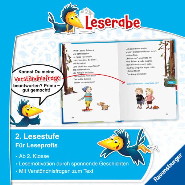 Die Kinderbücher der Reihe Leserabe - 2. Lesestufe wurden mit Pädagogen entwickelt und richten sich an Kinder ab 7 Jahren. Es warten spannende Geschichten auf fortgeschrittene Erstleser. Neben dem Leserätsel fördern vertiefende Fragen zum Text das Leseverständnis. Kinder lieben Rätsel und können selbstständig überprüfen, ob sie der Geschichte folgen konnten.