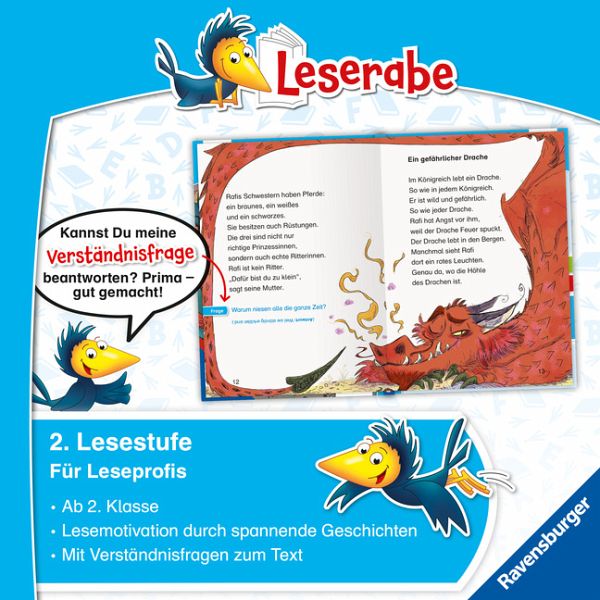 Die Kinderbücher der Reihe Leserabe - 2. Lesestufe wurden mit Pädagogen entwickelt und richten sich an Kinder ab 7 Jahren. Es warten spannende Geschichten auf fortgeschrittene Erstleser. Neben dem Leserätsel fördern vertiefende Fragen zum Text das Leseverständnis. Kinder lieben Rätsel und können selbstständig überprüfen, ob sie der Geschichte folgen konnten.