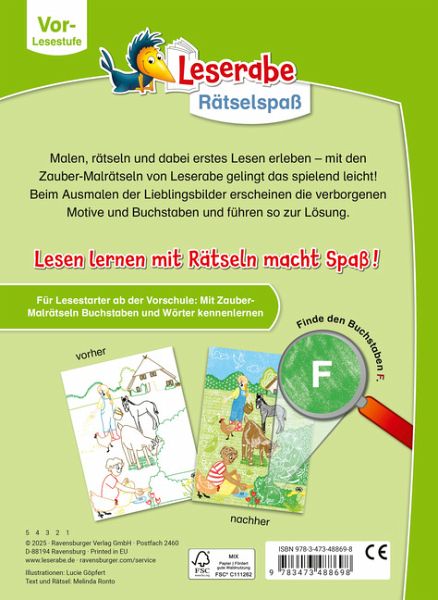 Spielerische Leseförderung mit Wow-Faktor - dieser kunterbunte Mix aus Rätseln und Malen auf magischem Papier packt auch Mal- und Lesemuffel. Bilderrätsel, Buchstabenrätsel, Suchrätsel und noch viel mehr - da ist für jeden Rätselfuchs was dabei. Und beim Malen und Knobeln fällt den Kindern gar nicht auf, dass sie die ersten Schritte in Richtung Lesenlernen machen. Die Rätsel sind abwechslungsreich und auf die Fähigkeiten von Vorschülern abgestimmt, so bleiben die jungen Lesestarter leichter dran.