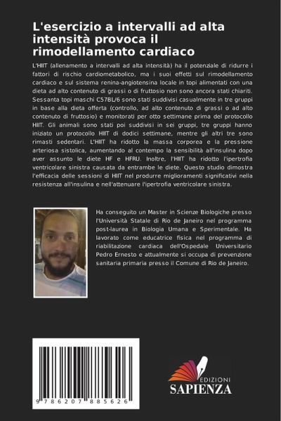 L'HIIT (allenamento a intervalli ad alta intensità) ha il potenziale di ridurre i fattori di rischio cardiometabolico, ma i suoi effetti sul rimodellamento cardiaco e sul sistema renina-angiotensina locale in topi alimentati con una dieta ad alto contenuto di grassi o di fruttosio non sono ancora stati chiariti. Sessanta topi maschi C57BL/6 sono stati suddivisi casualmente in tre gruppi in base alla dieta offerta (controllo, ad alto contenuto di grassi o ad alto contenuto di fruttosio) e monitorati per otto settimane prima del protocollo HIIT. Gli animali sono stati poi suddivisi in sei gruppi, tre gruppi hanno iniziato un protocollo HIIT di dodici settimane, mentre gli altri tre sono rimasti sedentari. L'HIIT ha ridotto la massa corporea e la pressione arteriosa sistolica, aumentando al contempo la sensibilità all'insulina dopo aver assunto le diete HF e HFRU. Inoltre, l'HIIT ha ridotto l'ipertrofia ventricolare sinistra causata da entrambe le diete. Questo studio dimostra l'efficacia delle sessioni di HIIT nel produrre miglioramenti significativi nella resistenza all'insulina e nell'attenuare l'ipertrofia ventricolare sinistra.