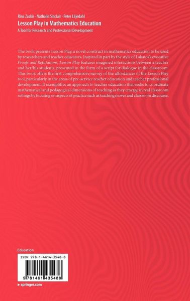 Lesson play is a novel construct in research and teachers' professional development in mathematics education. Lesson play refers to a lesson or part of a lesson presented in dialogue form-inspired in part by Lakatos's evocative Proofs and Refutations-featuring imagined interactions between a teacher and her/his students. We have been using and refining our use of this tool for a number of years and using it in a variety of situations involving mathematics thinking and learning. The goal of this proposed book is to offer a comprehensive survey of the affordances of the tool, the results of our studies-particularly in the area of pre-service teacher education, and the reasons that the tool offers such productive possibilities for both researchers and teacher educators.