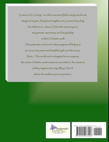 "Lessons for Liberty" is a three-section Bible study workbook, designed to give Scriptural insights and practical teaching for believers in Jesus Christ who want to grow into greater awareness and discipleship in their Christian walk. The materials contained in this program will help you to encounter personal breakthrough and discovery. Note: This workbook is designed to accompany the series of twelve audio sessions recorded in live sessions of the program at Living Way Church, where the authors serve as pastors.