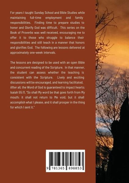 "Lessons from Proverbs" is one book with multiple uses: counseling, small group discipleship, devotional, and teaching Christian values. The emphasis is on wise living, the development of knowledge and discernment, and avoiding the pitfalls of life that lead to destruction. Studying with an open Bible and concurrent reading of Scripture, the lessons encourage understanding God's Holy Word.