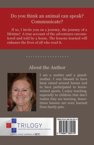 Do you think an animal can speak? Communicate? If so, I invite you on a journey, the journey of a lifetime! A true account of the adventures encountered and told by a horse. The lessons learned will enhance the lives of all who read it.