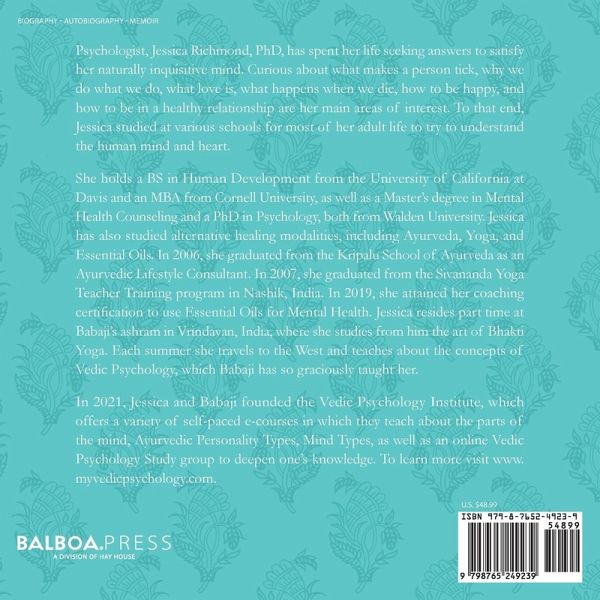 Vedic Psychologist, Jessica Richmond, PhD, shares her personal stories from life on the road traveling and teaching with her guru, a man of Vedic wisdom, Satyanarayana Dasa Babaji. Her stories are riddled with humor as she navigates the mysterious ways in which Babaji teaches her these lessons. The topics of Jessica's stories have a way of relating to everyone, such as how to navigate: a jealous boss her own jealousy caffeine addiction death and loss love phobias the silent treatment