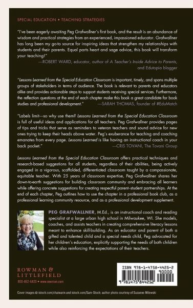 Lessons Learned from the Special Education Classroom offers practical techniques and research-based suggestions where all students, regardless of their abilities, are actively engaged in a vigorous, scaffolded, differentiated classroom taught by a compassionate, equitable teacher.