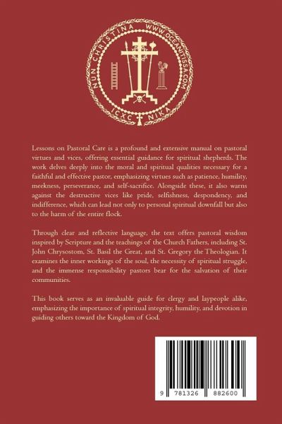 Lessons on Pastoral Care is a profound and extensive manual on pastoral virtues and vices, offering essential guidance for spiritual shepherds. The work delves deeply into the moral and spiritual qualities necessary for a faithful and effective pastor, emphasizing virtues such as patience, humility, meekness, perseverance, and self-sacrifice. Alongside these, it also warns against the destructive vices like pride, selfishness, despondency, and indifference, which can lead not only to personal spiritual downfall but also to the harm of the entire flock. Through clear and reflective language, the text offers pastoral wisdom inspired by Scripture and the teachings of the Church Fathers, including St. John Chrysostom, St. Basil the Great, and St. Gregory the Theologian. It examines the inner workings of the soul, the necessity of spiritual struggle, and the immense responsibility pastors bear for the salvation of their communities. This book serves as an invaluable guide for clergy and laypeople alike, emphasizing the importance of spiritual integrity, humility, and devotion in guiding others toward the Kingdom of God.