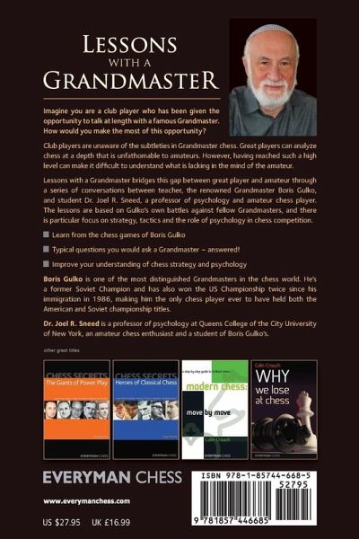 Lessons with a Grandmaster bridges the gap between grandmaster and amateur through a series of chess lessons between teacher, the renowned Grandmaster Boris Gulko, and student Dr. Joel R. Sneed, a professor of psychology and amateur chess player.