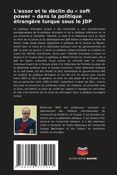 La politique étrangère turque a été confrontée à une transformation paradigmatique de la politique étrangère et de la politique intérieure en ce qui concerne la mentalité, l'identité, le style et la rhétorique sous le règne du Parti de la justice et du développement (JDP-Adalet ve Kalkinma Partisi-Ak Party). Cette étude évalue également la politique de la Turquie au Moyen-Orient dans le cadre de la diplomatie publique sous les gouvernements du JDP. Le parti au pouvoir a lancé sa politique moyen-orientale en mettant en avant son identité musulmane. D'une part, l'identité islamique a ouvert un espace à la Turquie dans sa politique au Moyen-Orient et, d'autre part, elle a jeté les bases culturelles d'une course au sommet avec un modèle islamique inspiré de la Turquie grâce à la rhétorique de l'histoire du pays de la diplomatie publique dans le monde musulman. Cette diplomatie publique et ce soft power ont été l'aspect le plus authentique du gouvernement AKP en matière de politique étrangère et ont été mis en oeuvre avec succès entre 2003 et 2011 en général, et l'élan du soft power de la Turquie a eu lieu en particulier entre 2005 et 2010. Cependant, à partir de 2011, c'est-à-dire avec le processus du printemps arabe, les relations, en particulier avec la Syrie, ont atteint un point de conflit par rapport à l'apogée du soft power et cela s'est terminé par la chute du soft power dans la politique étrangère turque.