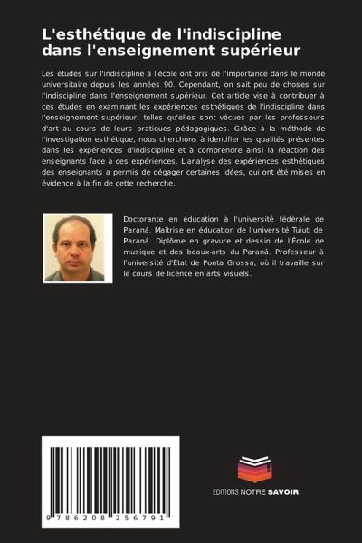 Les études sur l'indiscipline à l'école ont pris de l'importance dans le monde universitaire depuis les années 90. Cependant, on sait peu de choses sur l'indiscipline dans l'enseignement supérieur. Cet article vise à contribuer à ces études en examinant les expériences esthétiques de l'indiscipline dans l'enseignement supérieur, telles qu'elles sont vécues par les professeurs d'art au cours de leurs pratiques pédagogiques. Grâce à la méthode de l'investigation esthétique, nous cherchons à identifier les qualités présentes dans les expériences d'indiscipline et à comprendre ainsi la réaction des enseignants face à ces expériences. L'analyse des expériences esthétiques des enseignants a permis de dégager certaines idées, qui ont été mises en évidence à la fin de cette recherche.