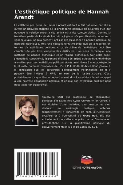La célébrité posthume de Hannah Arendt est tout à fait naturelle, car elle a ouvert un nouveau chapitre de la philosophie politique en éclairant d'un jour nouveau la relation entre la vita activa et la vita comtemplativa. Comme la troisième partie de La vie de l'esprit, « Juger », n'a pas été écrite, nombreux sont ceux qui, jusqu'à présent, ont essayé d'exposer sa pensée politique de manière ingénieuse. Voici une nouvelle tentative théorique de la redéfinir en termes d'« esthétique politique ». La discipline de l'esthétique peut être caractérisée par trois composantes distinctes : un sens esthétique, une méthode de pensée esthétique et un régime esthétique. Sur cette base, j'identifie la conscience, la pensée critique socratique et le point d'Archimède arendtien pour son esthétique politique. Après avoir dressé une typologie de la pluralité humaine composée de HP-I, HP-II, HP-III, HP-IV et HP-V, j'arrive à la conclusion que les personnes politiquement insignifiantes de HP-V peuvent être invitées à HP-IV au nom de la justice sociale. C'est probablement ce que Hannah Arendt voulait dire lorsqu'elle a lancé un appel à une nouvelle philosophie politique et ce que son esthétique politique peut nous apporter aujourd'hui.