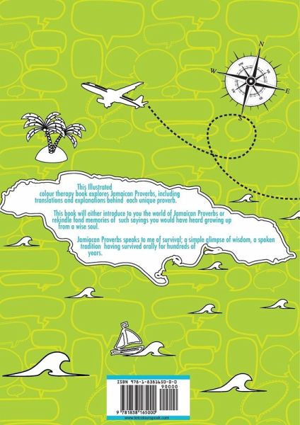 This Illustrated colour therapy book explores Jamaican Proverbs, including translations and explanations behind each unique proverb. This book will either introduce to you the world of Jamaican Proverbs or rekindle fond memories of such sayings you would have heard growing up from a wise soul. Jamaican Proverbs speaks to me of survival; a simple glimpse of wisdom, a spoken tradition having survived orally for hundreds of years.