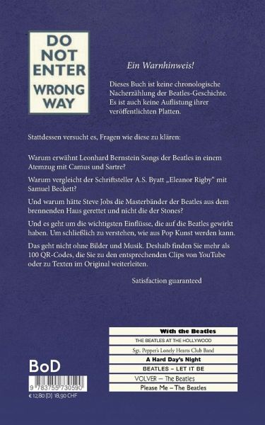 Dieses Buch ist keine chronologische Nacherzählung der Beatles-Geschichte. Es ist auch keine Auflistung ihrer veröffentlichten Platten.Stattdessen versucht es, Fragen wie diese zu klären:Warum erwähnt Leonhard Bernstein Songs der Beatles in einem Atemzug mit Camus und Sartre?Warum vergleicht der Schriftsteller A.S. Byatt 'Eleanor Rigby' mit Samuel Beckett?Und warum hätte Steve Jobs die Masterbänder der Beatles aus dem brennenden Haus gerettet und nicht die der Stones?Und es geht um die wichtigsten Einflüsse, die auf die Beatles gewirkt haben. Um schließlich zu verstehen, wie aus Pop Kunst werden kann.Das geht nicht ohne Bilder und Musik. Deshalb finden Sie mehr als 120 QR-Codes, die Sie zu den entsprechenden Clips von YouTube oder zu Texten im Original weiterleiten.Satisfaction guaranteed!