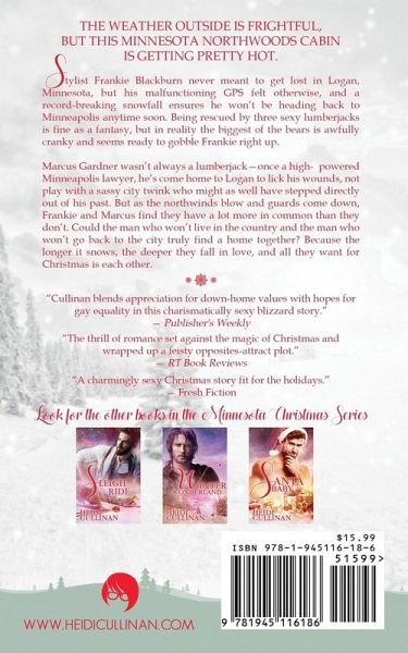 The weather outside is frightful, but this Minnesota Northwoods cabin is getting pretty hot. Stylist Frankie Blackburn never meant to get lost in Logan, Minnesota, but his malfunctioning GPS felt otherwise, and a record-breaking snowfall ensures he won’t be heading back to Minneapolis anytime soon. Being rescued by three sexy lumberjacks is fine as a fantasy, but in reality the biggest of the bears is awfully cranky and seems ready to gobble Frankie right up. Marcus Gardner wasn’t always a lumberjack—once a high-powered Minneapolis lawyer, he’s come home to Logan to lick his wounds, not play with a sassy city twink who might as well have stepped directly out of his past. But as the northwinds blow and guards come down, Frankie and Marcus find they have a lot more in common than they don’t. Could the man who won’t live in the country and the man who won’t go back to the city truly find a home together? Because the longer it snows, the deeper they fall in love, and all they want for Christmas is each other.