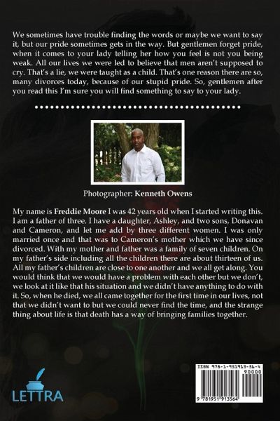 We sometimes have trouble finding the words or maybe we want to say it, but our pride sometimes gets in the way. But gentlemen forget pride, when it comes to your lady telling her how you feel is not you being weak. All our lives we were led to believe that men aren't supposed to cry. That's a lie, we were taught as a child. That's one reason there are so, many divorces today, because of our stupid pride. So, gentlemen after you read this I'm sure you will find something to say to your lady.