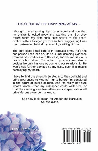 This shouldn't be happening again... I thought my screaming nightmares would end now that my stalker is locked away and awaiting trial. But they return when my slam-dunk case starts to fall apart. Explicit letters I allegedly wrote surface, suggesting I was the mastermind behind my assault, a willing victim. The only place I feel safe is in Marcus's arms. He's the one person I can lean on. Or he is until damning evidence from his past collides with the case, and the media circus drags us both down. To protect my reputation, Marcus decides he only has one option: end our relationship. He won't risk further damage to my case, even if it means destroying my heart. I have to find the strength to step into the spotlight and bring awareness to victims' rights before I'm convicted in the court of public opinion. And I'm really not sure what's worse-that my kidnapper could walk free, or that the seemingly endless attention and speculation will drive Marcus away permanently... See how it all began for Amber and Marcus in Tell Me When.
